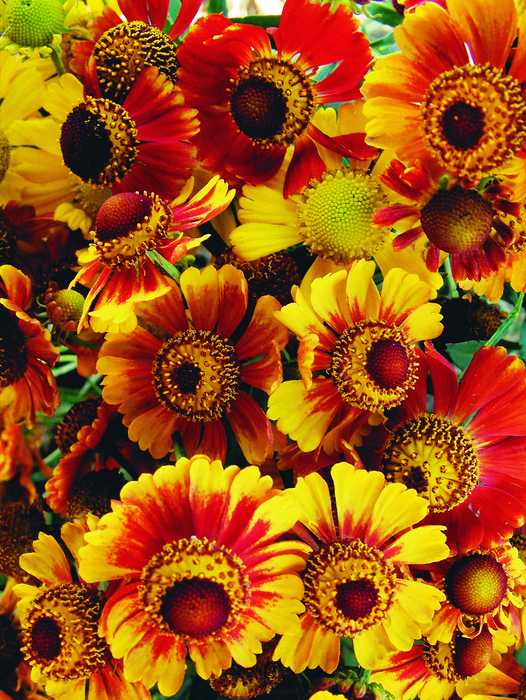 Семена гелениума осеннего Осенняя серенада — потрясающая смесь, которая наполнит ваш сад яркими красно-желтыми красками. Цветы на стебельках высотой до 120 сантиметров можно срезать для составления роскошных букетов. Этот сорт прекрасно сочетается с другими декоративными растениями. Цветы долго сохраняют эффектный вид и могут цвести до наступления осенних заморозков. Чтобы растения формировались крепкими и здоровыми, семена гелениума осеннего Осенняя серенада рекомендовано высевать на зиму. Летом кусты нуждаются в регулярном поливе, особенно в период засухи. Растение следует пересаживать раз в 3–4 года, а каждой весной подкармливать минеральными удобрениями.