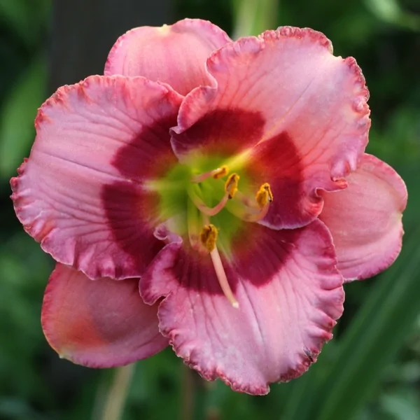 • Окраска цветка : розовый с красным глазком и зелёным горлом