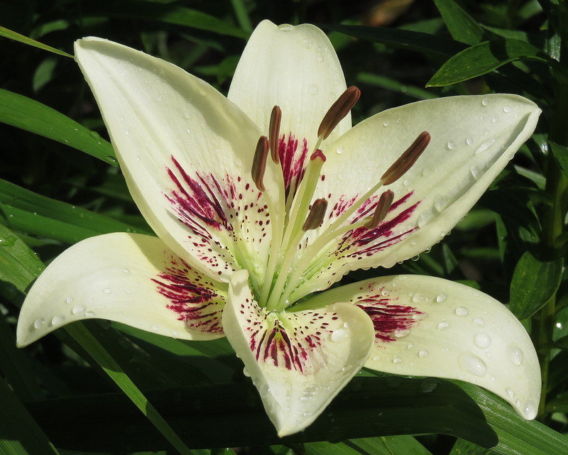 Луковицы лилии Centerfold рекомендуют высаживать в апреле – мае либо в сентябре. Место выбирают солнечное, с легким, рыхлым грунтом. Сорт отличается нежным ароматом и светлой окраской. С июня до августа на лилии Centerfold красуются белые крупные цветы, в серединке которых присутствуют фиолетовые штрихи. Диаметр раскрытых бутонов около 15 см. Растения используют для одиночных и групповых посадок, создания ароматных акцентов в смешанных цветниках, оформления различных зон сада.