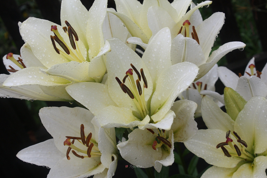 Окраска цветка : белый с темно-желтыми пыльниками