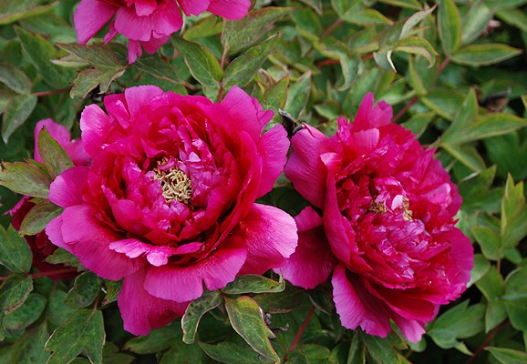 • Пионы используются для посадки многолетних клумб или создания групп растений. Они хорошо сочетаются с лилейниками, астрами или другими луковичными растениями.