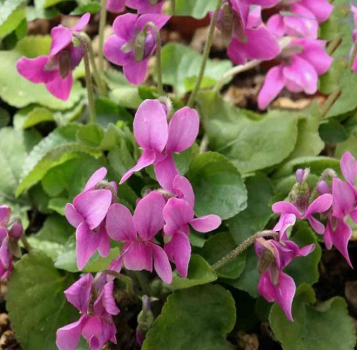 Рассада виолы (фиалки) душистая Red Charm довольно часто используется в каменистых садах и групповых посадках. Также культуру можно выращивать в контейнерах. Сорт неприхотливый, морозоустойчивый, подходит для солнечных и полутеневых мест. Высота многолетника от 10 до 15 сантиметров, ширина кустика до 25-30 сантиметров. Листочки насыщенно-зеленые, крупные. Цветочки виолы душистой Red Charm простые, одиночные, окрашены в яркий розово-лиловый цвет с более насыщенными мазками. Иногда просматривается небольшая белая серединка.